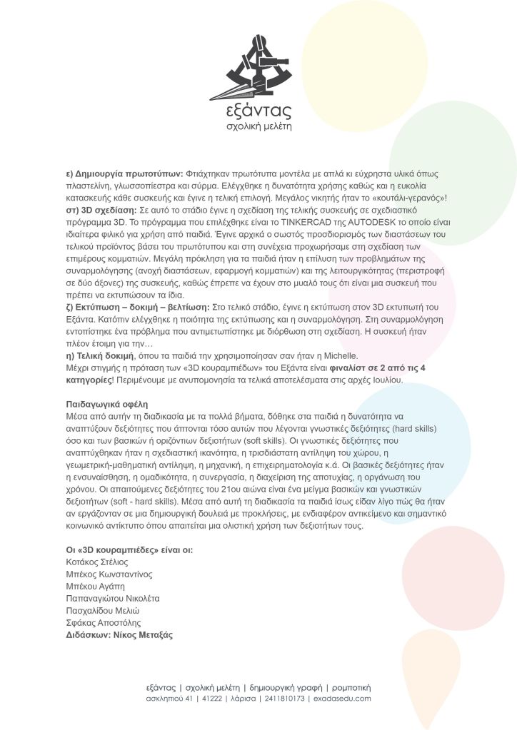 Μάθετε περισσότερα για τη συμμετοχή των «3D Κουραμπιέδων» στον διαγωνισμό: