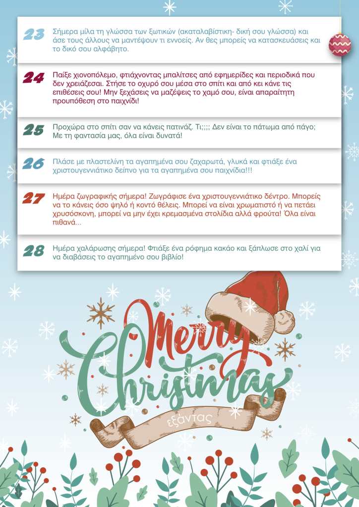 Ο Εξάντας Σχολική Μελέτη Δημοτικού μέχρι και την Πρωτοχρονιά προτείνει κάθε μέρα από μία δημιουργική δραστηριότητα! Βρείτε τη δραστηριότητα της ημέρας στη σελίδα μας στο Facebook.