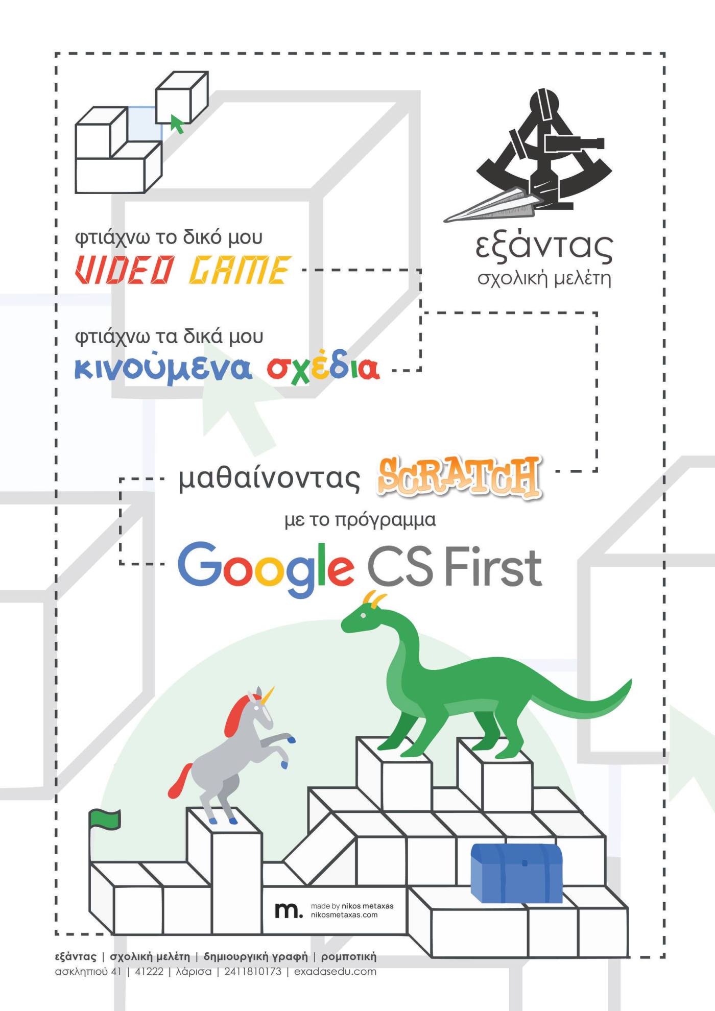 Στον Εξάντα | Σχολική μελέτη στο πλαίσιο των δραστηριοτήτων STEM (Science, Technology, Engineering, Mathematics) αποφασίσαμε να εντάξουμε ως καινούργιο πρόγραμμα την εκμάθηση γλώσσας προγραμματισμού (κώδικα). Γι’ αυτό επιλέξαμε την ολοκληρωμένη πλατφόρμα εκμάθησης Google CSFirst. Στη δραστηριότητα αυτή όπως και σε άλλες STEM και Hands-On δραστηριότητες (ρομποτική, 3D printing) κυρίαρχο ρόλο διαδραματίζει η επίλυση προβλημάτων και η διερευνητική μάθηση.